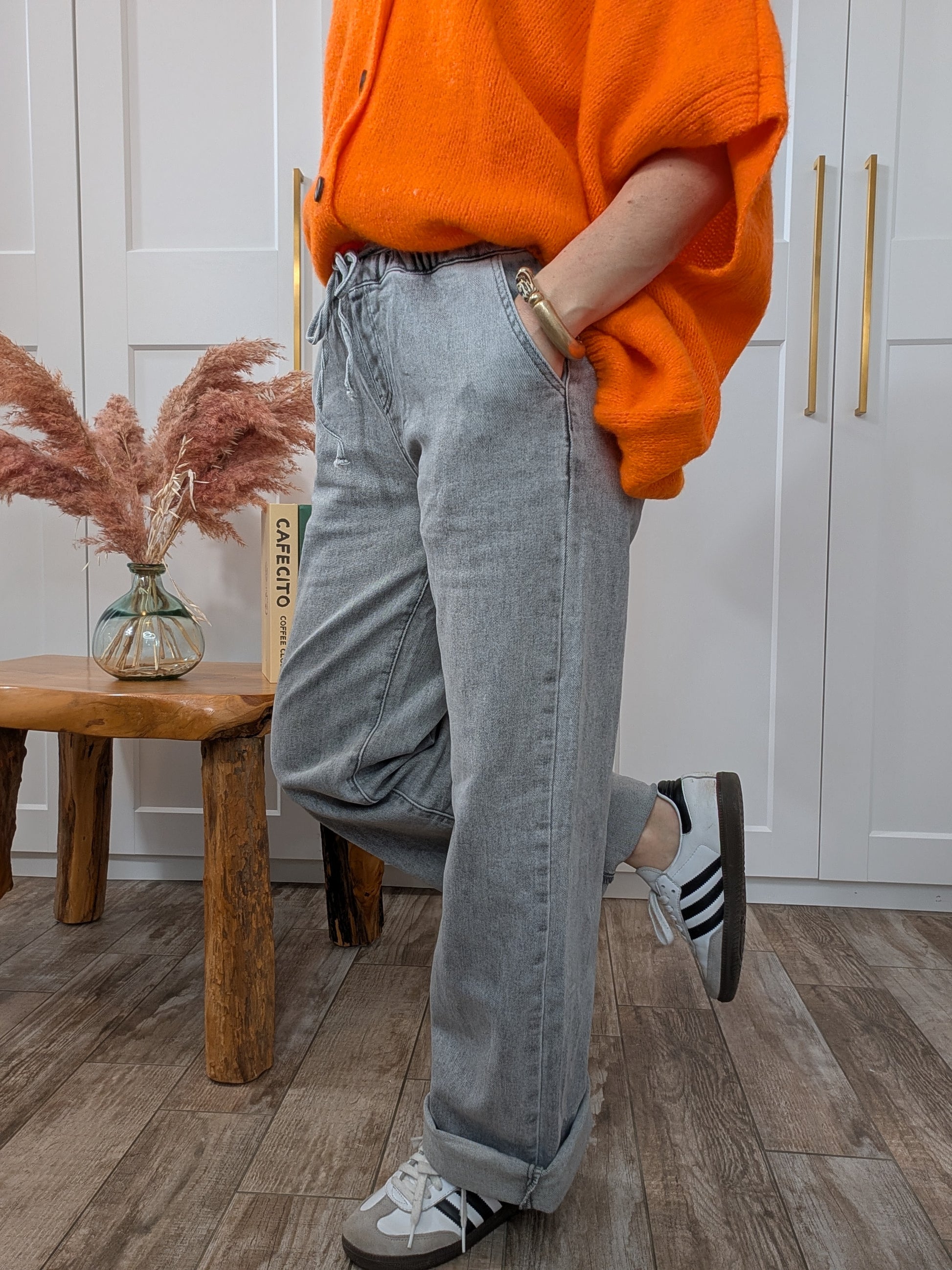 Le Jean Constance incarne l'équilibre parfait entre style affirmé et confort quotidien. Coupé en wedleg, il épouse élégamment la silhouette avant de s'élargir subtilement aux chevilles pour une allure moderne et flatteuse. La taille élastiquée offre une liberté de mouvement sans compromis, tandis que le nœud original à la ceinture devient une signature distinctive de la pièce.